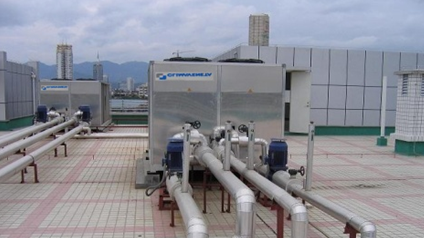 上海市復(fù)旦大學(xué)附屬眼耳鼻喉科醫(yī)院潔凈空調(diào)部分采用三臺(tái)四管制多功能冷熱水機(jī)組,機(jī)組單臺(tái)制冷量140RT;在2008年,克萊門(mén)特三臺(tái)高溫型風(fēng)冷熱泵已在上海市腫瘤醫(yī)院投入運(yùn)行,且至今運(yùn)行狀況良好。因此,上海市腫瘤醫(yī)院在此次改造項(xiàng)目中又新增兩臺(tái)風(fēng)冷熱泵,機(jī)組單臺(tái)制冷量100RT。為了控制醫(yī)院以及周?chē)用癍h(huán)境噪音,兩家醫(yī)院此次均采用超低噪音型機(jī)組,比傳統(tǒng)風(fēng)冷熱泵低10分貝。