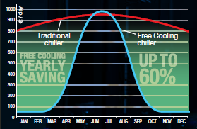 夏季,機組與常規(guī)機組一樣進行正常制冷;冬季,完全使用自然冷卻制冷,壓縮機制冷系統(tǒng)關(guān)閉,機組無壓縮機功耗,僅有少量的風(fēng)扇運轉(zhuǎn)能耗;過渡季節(jié),機組自動開啟自然冷卻功能,預(yù)冷冷凍水,自然冷卻不夠的部分,再由壓縮機制冷接力達到需求冷量??巳R門特采用W3000微電腦智能控制系統(tǒng),其特有的自適應(yīng)功能可根據(jù)用戶水溫、環(huán)境溫度變化智能地調(diào)節(jié)壓縮機供冷量。克萊門特多年的自然冷卻機組設(shè)計經(jīng)驗與精確的資源整合控制,有力地保證了機組在滿足總冷量需求的前提下較小化壓縮機工作,較大化自然冷卻,用節(jié)能的方式可靠運行。因此,克萊門特自然冷卻風(fēng)冷冷水機組產(chǎn)品系列可以實現(xiàn)高可靠性和高達60%的節(jié)能率。