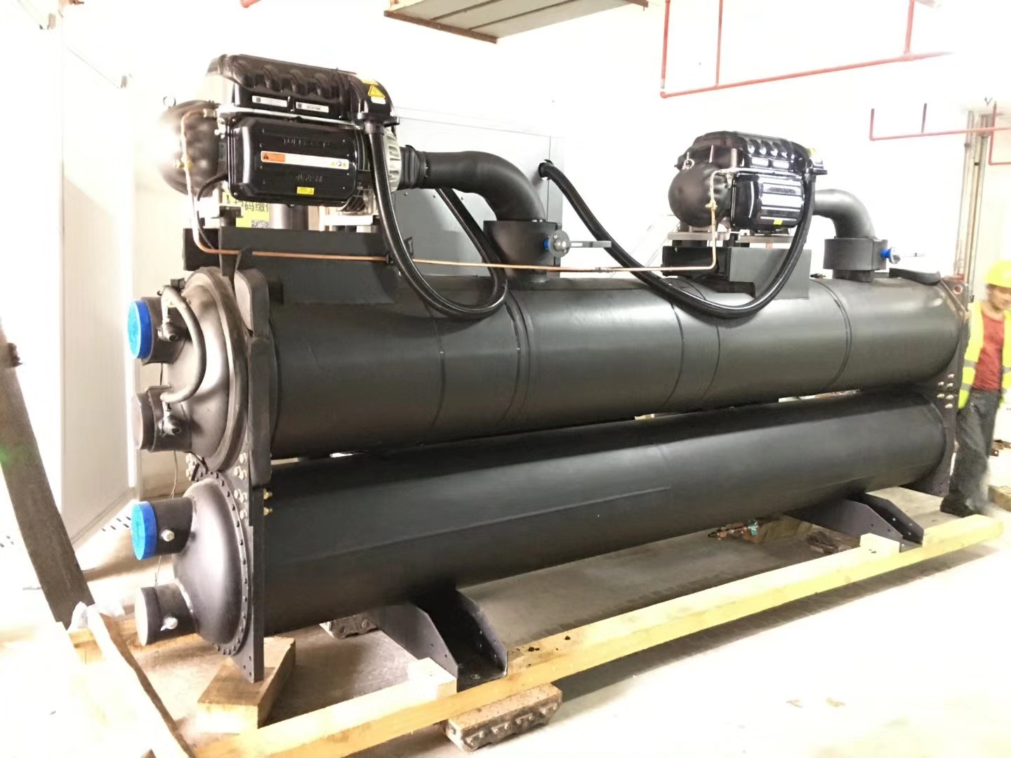 螺桿冷水機(jī)組, 單臺(tái)制冷量為1392KW,功率260KW,使用日期2011年3月,設(shè)備供冷區(qū)域:住院樓、醫(yī)技樓和門診樓 ,由于舊設(shè)備效率較低,院方?jīng)Q定采用克萊門特高效率的新型冷水機(jī)組——水冷磁懸浮離心式冷水機(jī)組替換原有冷水機(jī)組,降低運(yùn)行能耗。目前其中一臺(tái)機(jī)組已替換,之后將全部替換為克萊門特水冷磁懸浮離心式冷水機(jī)組。
